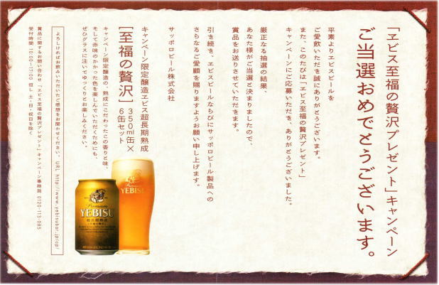 懸賞はなかなか当たらないと思っていましたが、結構当たるものなのですね。