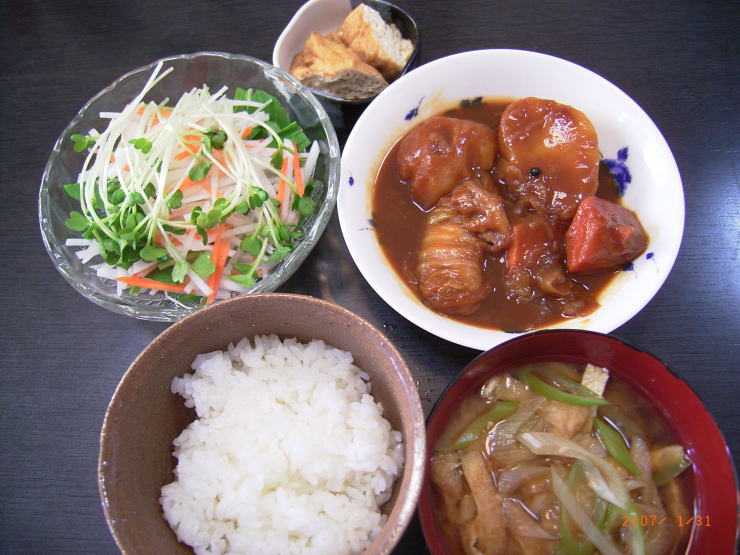 ○白菜シチュー(白菜、ベーコン、玉葱、人参、ジャガイモ)