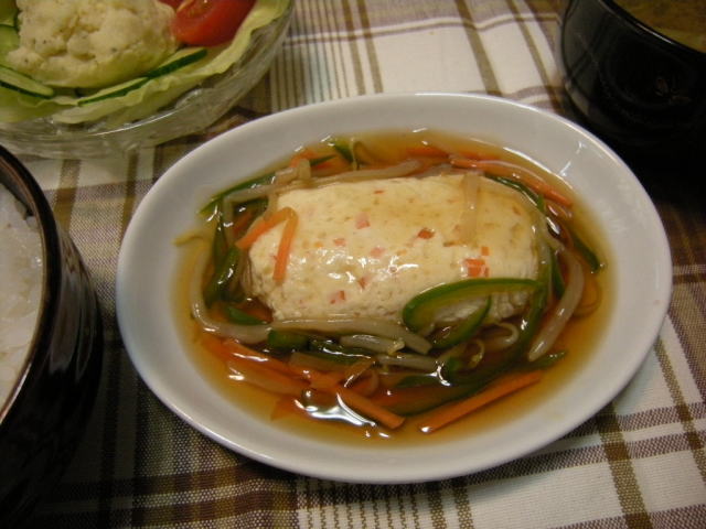 一個を餡かけにしてお昼のおかずに、残りは火を通して冷凍しました。