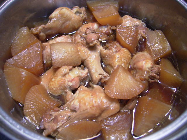 人参、大根、玉ネギ、しめじをコンソメスープと塩胡椒で煮込みました。