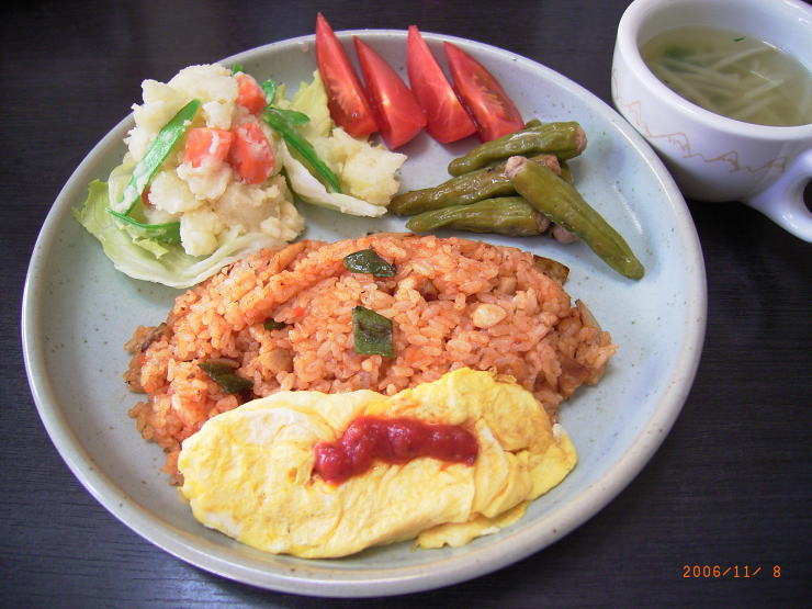 ○チキンライス(鶏肉、ピーマン、玉葱、玉子)