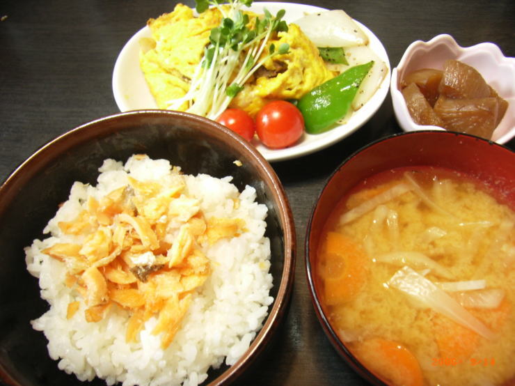 主夫なのに洗濯物を干すのを忘れていました、主夫失格。○マグロの味噌漬けと竹の子の煮物(マグロ、竹の子、厚揚げ、人参、ピーマン、玉葱、しし唐)○目玉焼き丼(玉子、キャベツ) ご飯には発芽玄米を混ぜてあります。ハバネロ醤油は上手いな