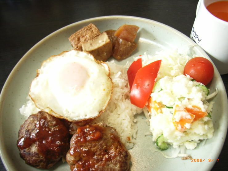 何か変な取り合わせ、ハンバーグは夕食にします。