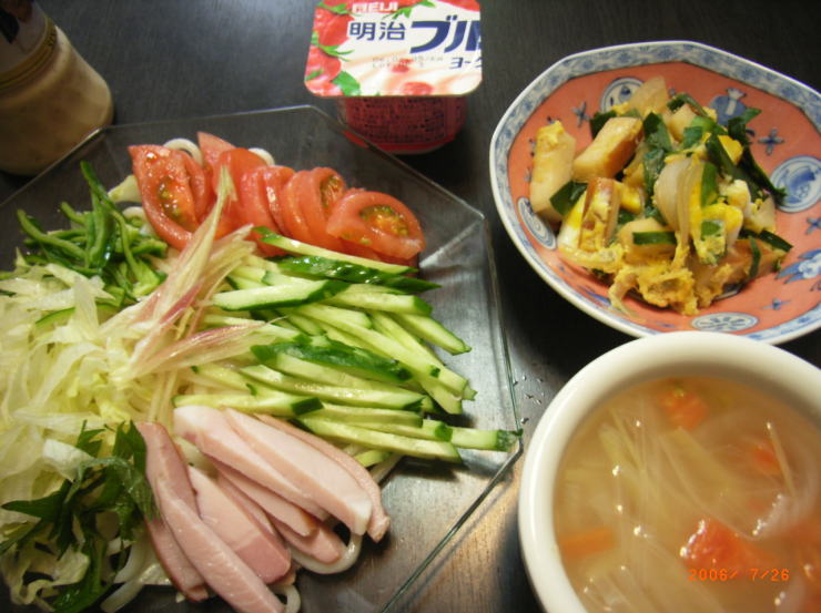蒸し暑いです、暑いのでサラダうどんにしました。